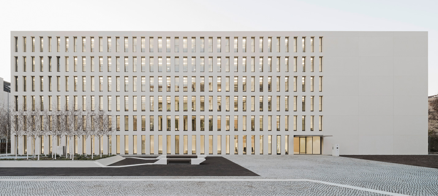 Das sechsgeschossige Gebäude mit seiner konsequenten Fassadengestaltung entstand am östlichen Rand des Stadtzentrums auf dem Areal einer ehemaligen Parfümfabrik. Der Neubau bietet beste Voraussetzungen für einen schnellen und professionellen Bürgerservice: ein modernes Kundenzentrum im Erdgeschoss in Kombination mit kurzen Wegen, die durch die konsequente Umsetzung von Kombibüros entstehen. Dank zahlreicher Maßnahmen in der Gebäudehülle und bei der Gebäudetechnik erreicht das Gebäude die Qualität eines Passivhauses und eine hohe Energieeffizienz. Mit der großen Photovoltaikanlage und dem Anschluss an die städtische Fernwärme werden die Vorgaben des Erneuerbare Energien Gesetzes werden um 87 Prozent übererfüllt.